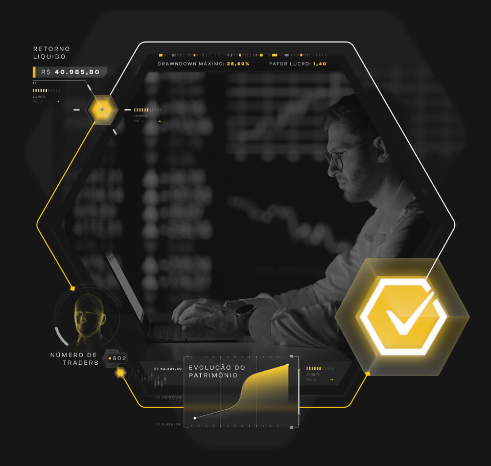 Desenvolvida por traders profissionais e especialistas em tecnologia financeira, a BeeBots utiliza uma metodologia validada globalmente. Cada estratégia implementada na plataforma passou por testes extensivos e aprovação rigorosa, garantindo segurança e performance desde o primeiro uso.