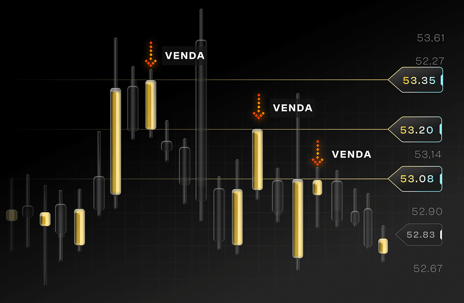 Nos gráficos menores, ela encontra pontos exatos para entradas e saídas rápidas, maximizando o retorno por trade.